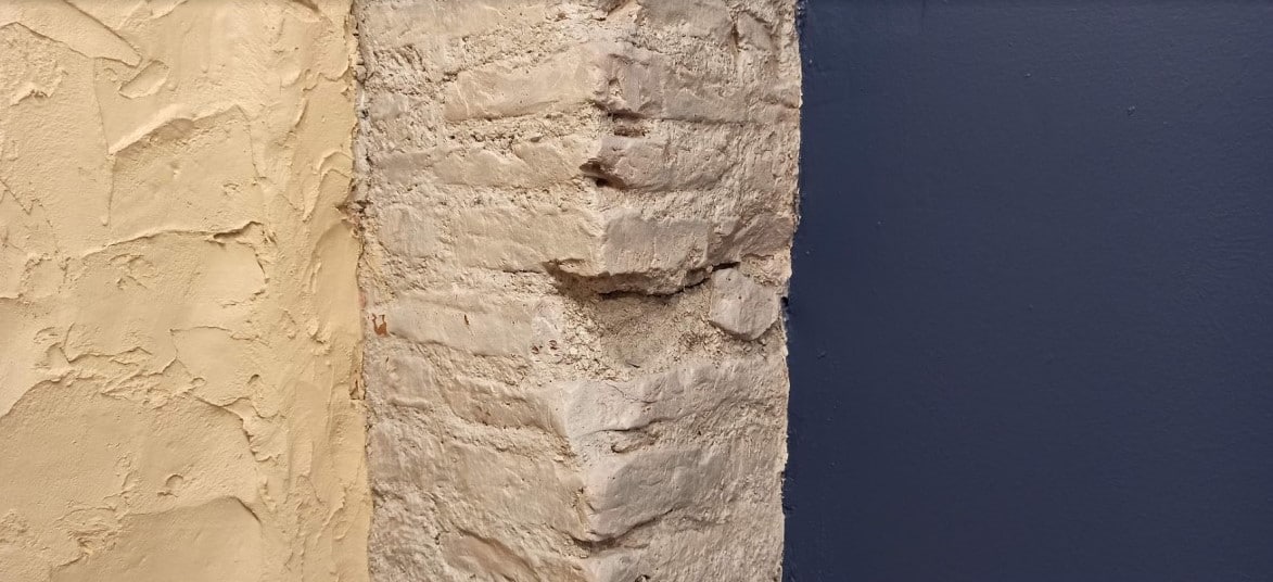 Tras demoler el pladur de las paredes observamos que una de ellas no tenía solución, por lo que repusimos el pladur, en el resto se encontraba en buen estado, aunque tuvimos que hacer un trabajo de saneado, cepillado y barnizado para obtener el resultado estético que buscábamos, incluso en una pequeña parte tuvimos que darle un revestimiento rústico con un enfoscado de cemento, ya que no tenía una buena estética.